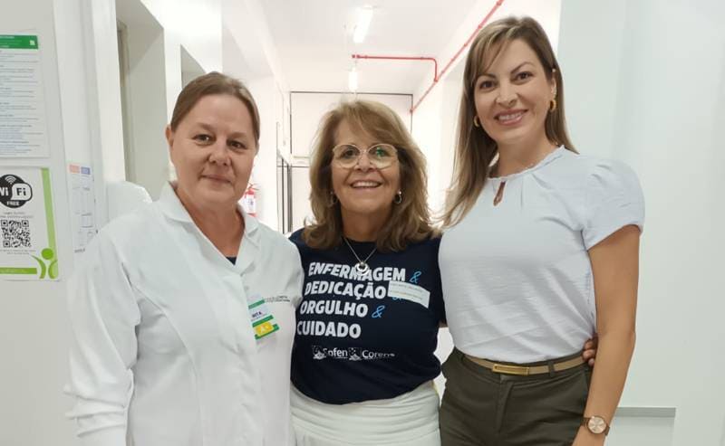 A presidente do Conselho Regional de Enfermagem de Santa Catarina (Coren-SC), Maristela Azevedo, liderou uma visita ao Hospital Santa Cruz de Canoinhas na manhã desta quinta-feira (13), com o objetivo de fortalecer o diálogo com os profissionais de Enfermagem da região e conhecer de perto a realidade do hospital.
