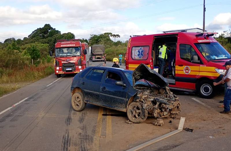 Um acidente de trânsito envolvendo um caminhão e um carro foi registrado na tarde deste domingo (30) na SC-477, próximo à Represa da Volta Grande, em Rio Negrinho. Apesar da colisão, os dois motoristas saíram ilesos.