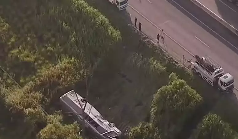 A apuração da PRF indicou que o ônibus fez uma manobra no acostamento, subiu no meio fio e caiu na ribanceira. A CCR, empresa concessionária que administra a rodovia, nega que solo tenha cedido.