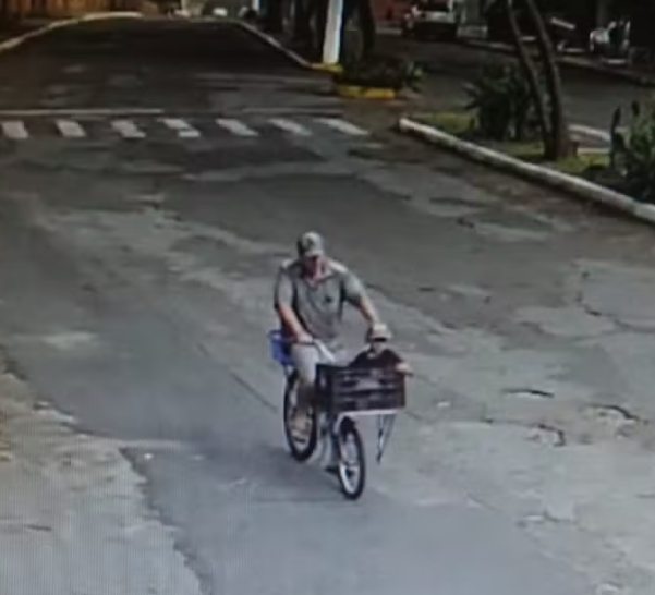 Ainda conforme a polícia, o homem teria andado pelas ruas da cidade, buscando o local ideal para tirar a vida do menino. Câmeras de monitoramento flagraram o homem em uma bicicleta, com a criança na frente, horas antes do crime. Veja abaixo.