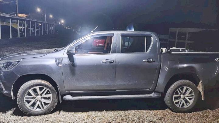 Por volta das 22h20, os policiais militares abordaram uma picape Toyota Hilux e, durante a busca veicular, encontraram duas placas modelo Mercosul com números de identificação diferentes, o que gerou suspeitas sobre a regularidade do veículo.