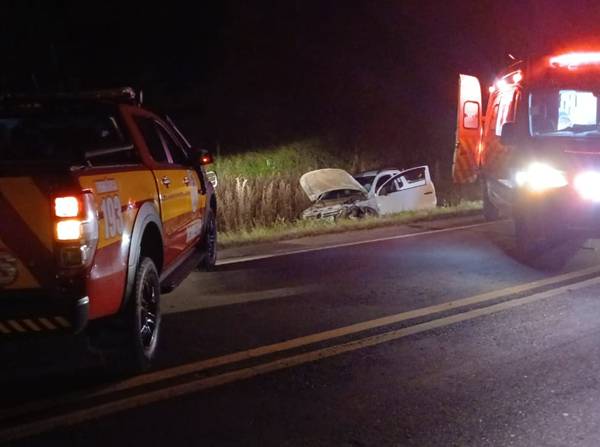 No veículo Saveiro, um senhor de 60 anos apresentava dores nos arcos costais. Após imobilização com colar cervical, ele foi retirado do veículo e encaminhado para a Unidade de Pronto Atendimento (UPA) de Canoinhas.