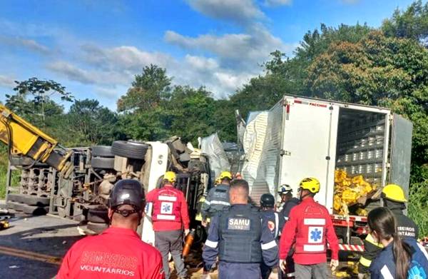 Segundo informações apuradas, um caminhão porta-container, após sair da BR-101 e acessar a rodovia estadual, tombou na pista, na altura do Km 33. Um segundo caminhão, que estava carregado com fardos de cerveja e seguia no sentido oposto, não conseguiu evitar a colisão e atingiu o veículo tombado.