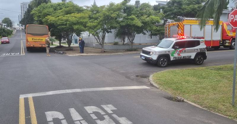 Na manhã desta terça-feira (8), um acidente de trânsito envolvendo um ônibus escolar e um ciclista foi registrado na Rua Felipe Schmidt, no bairro Cidade Nova, em Porto União.