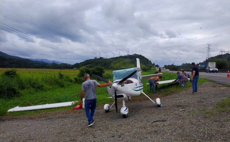 O monomotor que realizou um pouso forçado na BR-101, em Garuva, no norte de Santa Catarina, na manhã deste sábado (5), é um Pelican 500 BR, utilizado para pulverização agrícola.