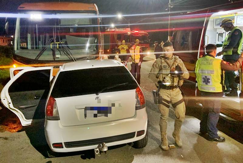 Uma colisão frontal entre um automóvel e um ônibus mobilizou o Corpo de Bombeiros Militar de Canoinhas e Três Barras na noite deste domingo (20).