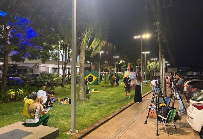 Do lado de fora do hospital, um grupo de cerca de 15 apoiadores se reuniu em vigília, carregando bandeiras do Brasil. Eles oraram, entoaram palavras de apoio e transmitiram mensagens nas redes sociais, mas a movimentação foi considerada discreta. Não houve necessidade de reforço na segurança, e a entrada do hospital permaneceu tranquila.