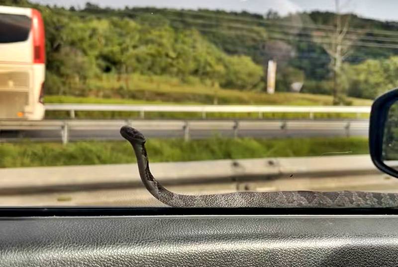 Um motorista levou um baita susto ao encontrar uma cobra dormideira deslizando pela janela de seu carro, enquanto estava parado no trânsito da BR-101, em Paulo Lopes, na Grande Florianópolis. Luan Campos, de 28 anos, estava voltando de viagem quando se deparou com a serpente rastejando ao seu lado.