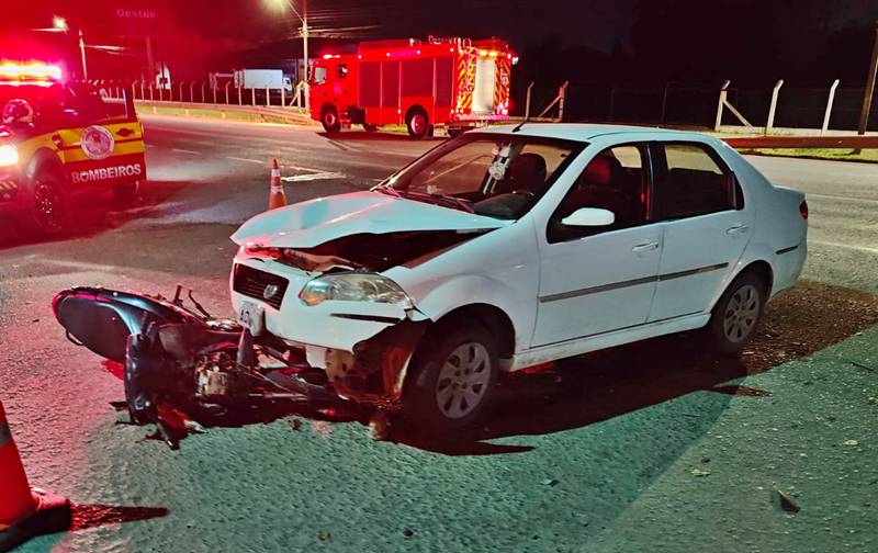 Um grave acidente de trânsito foi registrado na noite de sexta-feira (04), por volta das 20h40, no entroncamento da BR-280 com a Rua João Mario Mayer no bairro Água Verde, Canoinhas. A colisão envolveu um Fiat Siena e uma motocicleta Honda Biz 100.