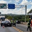 Ao chegarem ao local, as guarnições confirmaram a ocorrência de uma colisão envolvendo um automóvel Citroën de cor branca e um caminhão Mercedes-Benz Acello.