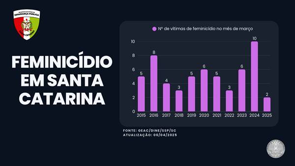 “A redução dos casos de feminicídio em Santa Catarina ao menor índice dos últimos dez anos é resultado do trabalho integrado das nossas Forças de Segurança. Com o apoio constante do governador Jorginho Mello, que tem sido um grande aliado nessa causa, fortalecemos ações como a Rede Catarina, as DPCAMIs, as Salas Lilás e o Botão do Pânico. Seguiremos firmes na proteção das mulheres catarinenses”, destacou o secretário.