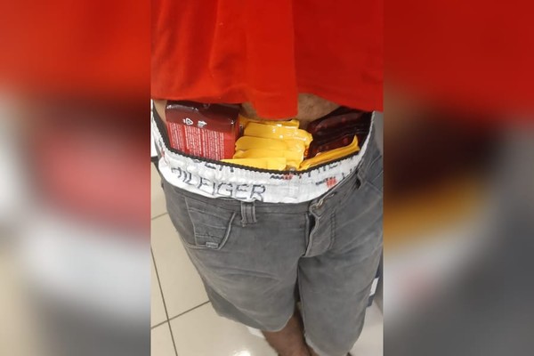 Durante a revista, foram encontradas seis barras de chocolate escondidas na cintura do indivíduo.
