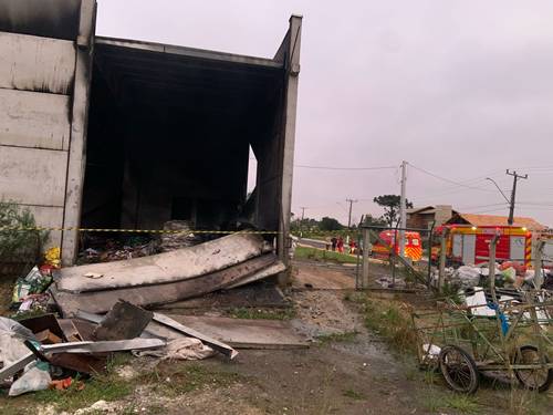 O Corpo de Bombeiros Militar foi acionado e atendeu à ocorrência com três viaturas. O fogo, em fase de crescimento e confinado, atingia um barracão de aproximadamente 375 metros quadrados, feito de concreto pré-moldado e utilizado para armazenamento de materiais recicláveis.