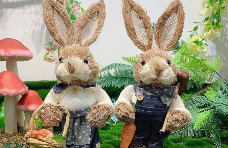 O solicitante, ao perceber o desaparecimento dos objetos, iniciou uma busca e localizou um coelho grande de pano, parte dos enfeites furtados, no pátio de uma casa vizinha.