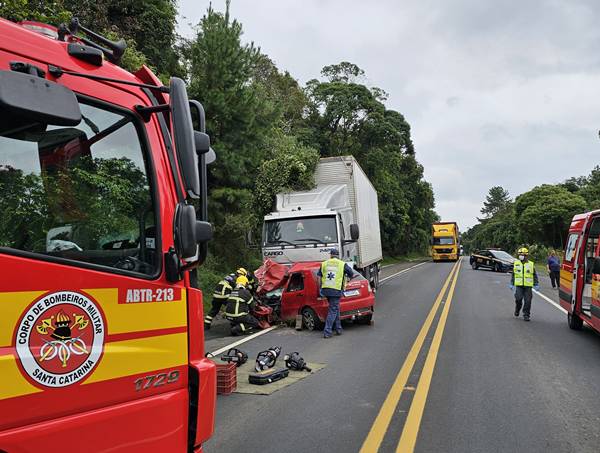 O acidente aconteceu por volta das 11h30, no km 194 da rodovia, sentido Mafra–Canoinhas.