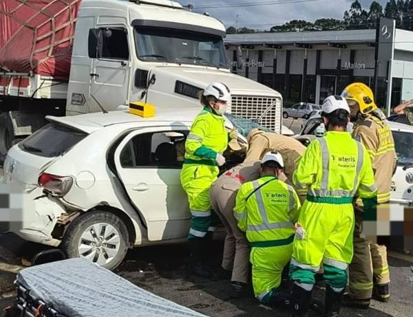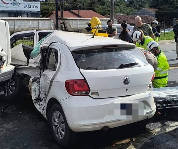 Na manhã desta quinta-feira (18), um grave acidente de trânsito foi registrado na BR-116, no Km 07, no Bairro Faxinal, em Mafra, em frente ao Posto Mallon. A colisão envolveu três veículos e mobilizou equipes de resgate da Auto Pista e do Corpo de Bombeiros de Rio Negro (PR) e Mafra.
