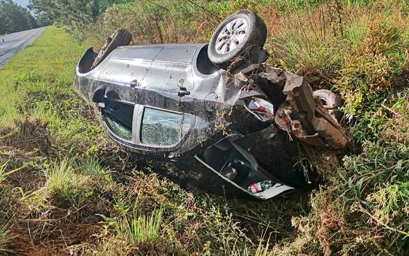 Uma mulher de 41 anos ficou ferida em um acidente de trânsito na SC-135, em Matos Costa, na tarde desta quarta-feira (3). A vítima, que conduzia um veículo VW/Novo Voyage, com placas Mercosul, perdeu o controle do carro, saiu da pista e capotou.