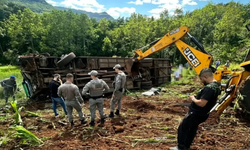 Um ônibus que transportava estudantes e professores do curso de Paisagismo do Colégio Politécnico da Universidade Federal de Santa Maria (UFSM) tombou em uma ribanceira, na RSC-453, em Imigrante, na manhã desta sexta-feira (4). Sete mortes estão confirmadas, de acordo com a comandante dos bombeiros voluntários do município, Caroline Hauschild.