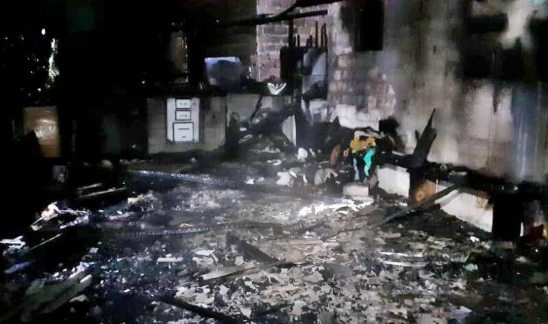 O fogo consumiu aproximadamente 70% da residência. Uma cozinha de madeira e um banheiro e quarto de alvenaria, localizados nos fundos, foram totalmente destruídos pelas chamas.