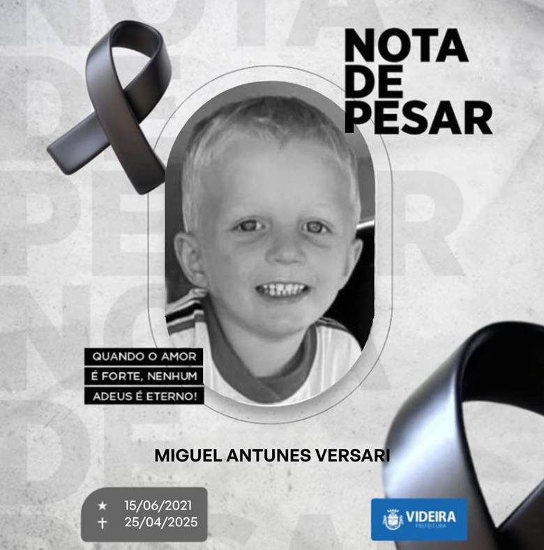 “Miguel, era aluno do Maternal II, do Cemei Lúcia Grazziotin e, em sua breve passagem, encantou a todos com sua alegria contagiante, seu sorriso sincero e sua pureza de criança. Sua presença iluminava os dias e deixava marcas de ternura e amor por onde passava.