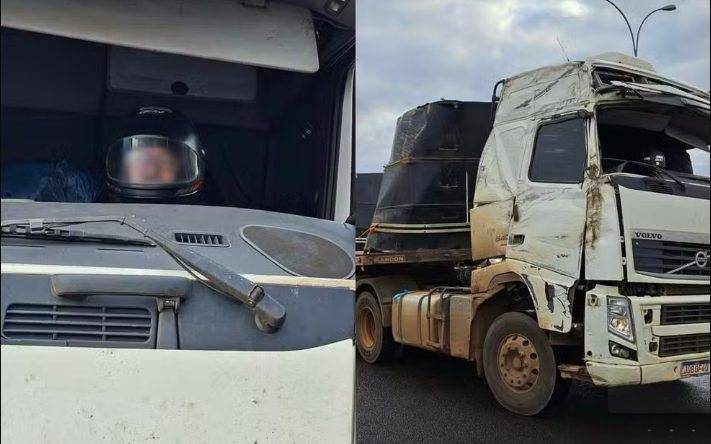 O motorista, um homem de 63 anos, utilizava um capacete como forma de proteção contra o vento e detritos, dada a ausência do para-brisa.