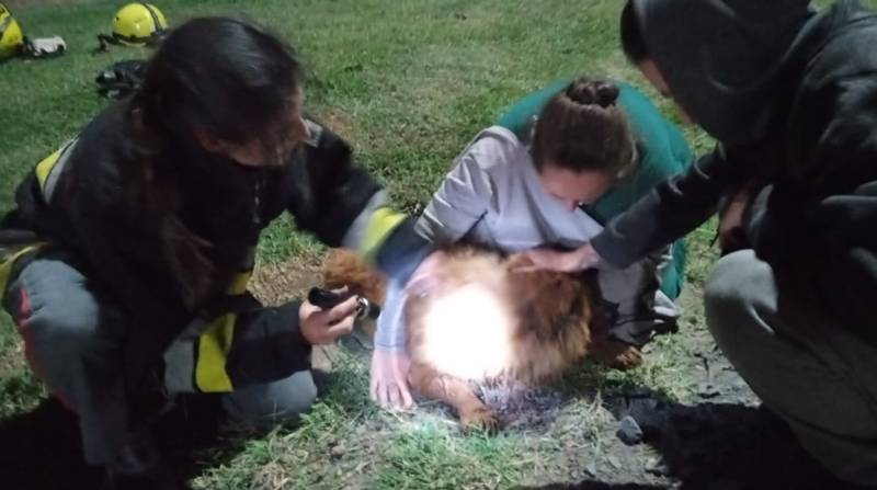 Após alguns minutos de tensão, Yoshi foi resgatado com sucesso, para o alívio de sua tutora e dos presentes. O cão, apesar do susto, aparentava estar saudável.