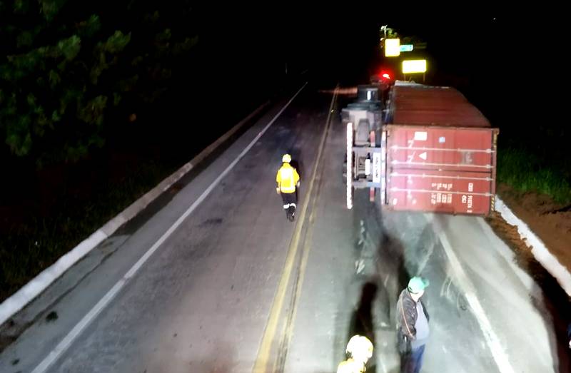 Um acidente de trânsito foi registrado no início da manhã desta terça-feira (15), na BR-280, bairro Serra Alta, em São Bento do Sul. O Corpo de Bombeiros Militar foi acionado por volta das 05h17 para atender a ocorrência de tombamento de carreta próximo ao trevo do Zé Colméia.