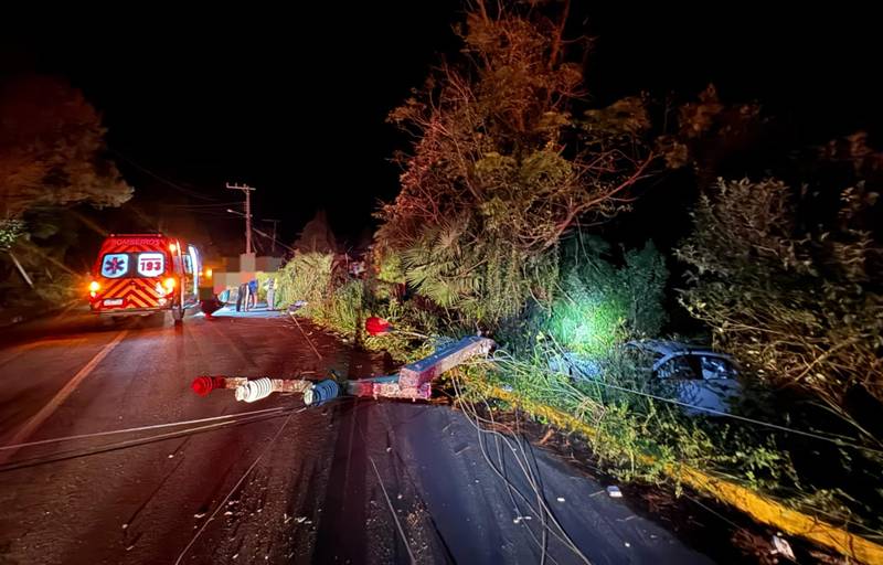A colisão de um carro contra um poste, seguida da queda de fiação e da saída de pista do veículo, mobilizou equipes de resgate e interrompeu o tráfego na região.