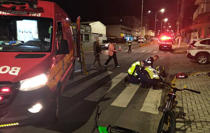 Duas pessoas ficaram feridas após um atropelamento envolvendo carro e bicicleta na noite deste domingo (25), em Mafra. O acidente ocorreu por volta das 19h20, na Avenida Coronel José Severiano Maia, nas proximidades do trevo da Dirmave Veículos.