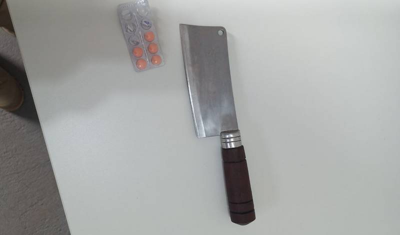 Ele foi abordado em um terreno vizinho e, no momento da detenção, tentou se desfazer de um facão tipo “cutelo”.