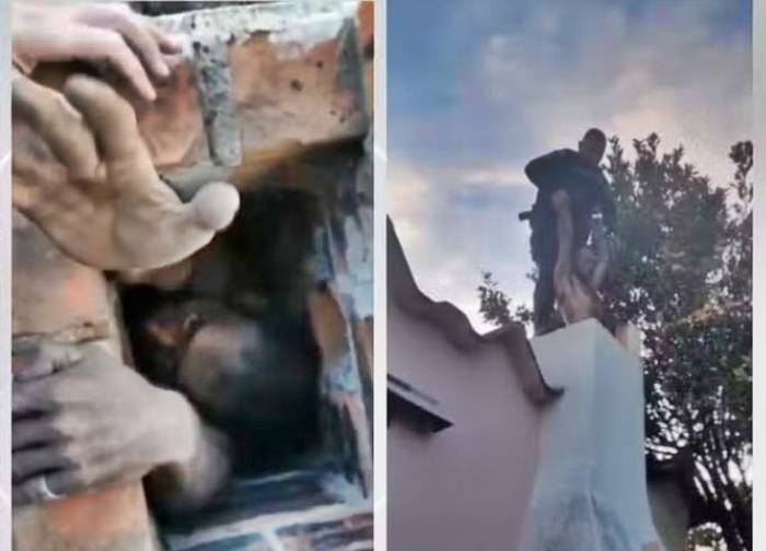 Ao chegarem ao local, os agentes encontraram o homem preso dentro da estrutura da churrasqueira, com os pés balançando para fora da chaminé. “Caminharam até em cima da casa procurando o rapaz, e ele gritando e gritando sem parar. Aí quando abriram a churrasqueira, viram os pés dele balançando. Resolveram subir por lá e puxar ele pelos braços. No final, ele já estava rouco de tanto gritar”, relatou a moradora, que preferiu não se identificar.
