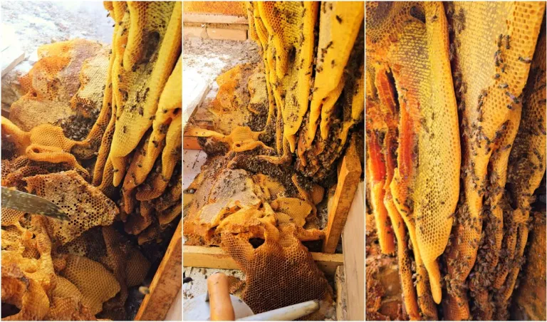 A estrutura impressionava: segundo a prefeitura, a colmeia media cerca de um metro quadrado e abrigava uma grande quantidade de mel, pólen e posturas — áreas onde se desenvolvem as crias e onde reside a abelha rainha.