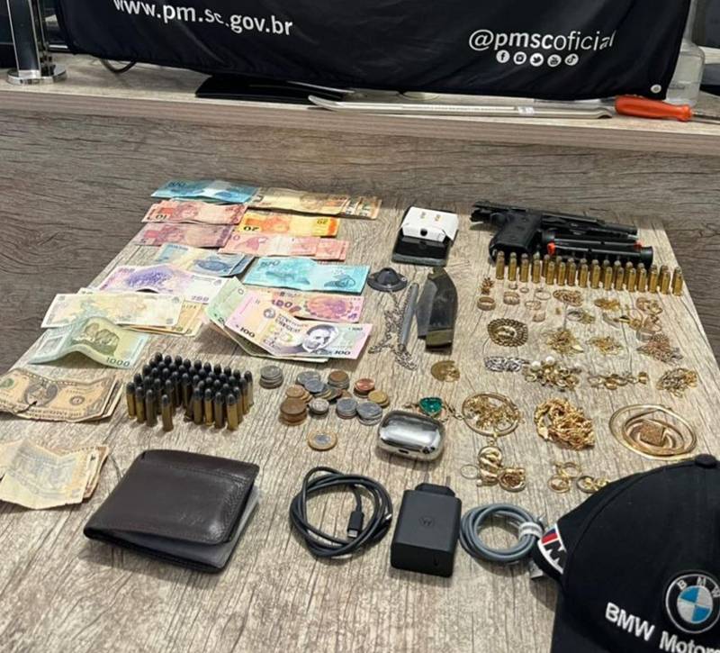 No momento da abordagem, os agentes encontraram em posse do suspeito quantias em dinheiro e objetos que coincidem com os relatos de uma das vítimas dos furtos. Além disso, uma arma de fogo foi apreendida com o indivíduo.