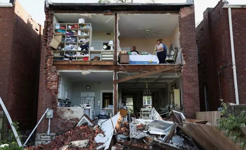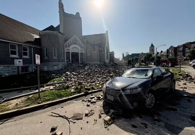 Na Igreja Cristã Centennial, em St. Louis, três pessoas precisaram ser resgatadas após o desabamento parcial do prédio. Uma delas morreu, de acordo com o Corpo de Bombeiros local. “Foi realmente devastador”, afirmou a prefeita de St. Louis, Carla Spencer.