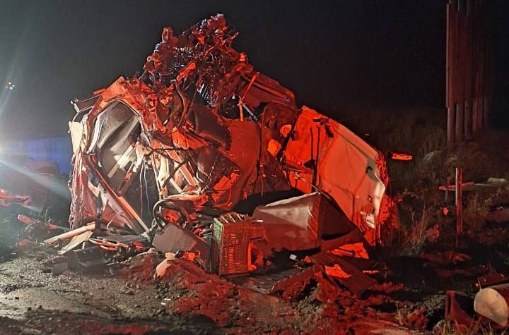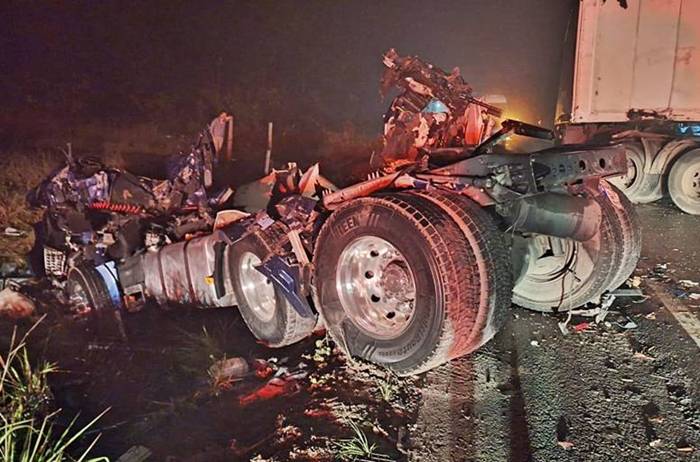 A colisão frontal entre dois caminhões deixou os veículos completamente destruídos e mobilizou diversas equipes de socorro.