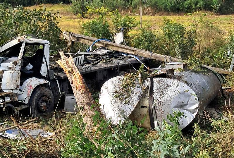 Ao chegar ao local, as guarnições confirmaram a ocorrência: tratava-se de uma saída de pista, seguida de colisão em um poste de energia elétrica, em uma árvore e, posteriormente, tombamento de um caminhão Volkswagen 23.220, carregado com leite.