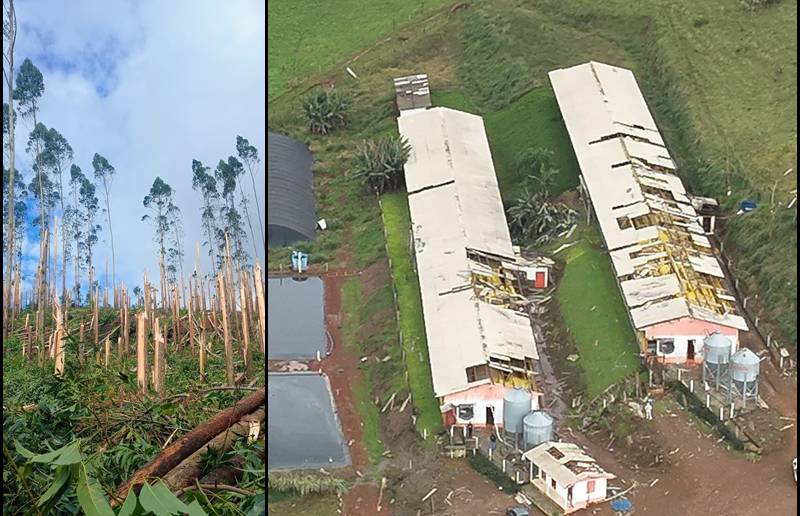 Este tipo de fenômeno é conhecido por produzir intensas rajadas de vento, confirmando a força dos temporais que atingiram o estado. O sistema também provocou danos em municípios como Xaxim, Xanxerê e São Lourenço do Oeste, com registros de destelhamentos, queda de árvores, galhos e postes.