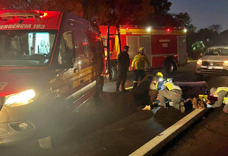 A vítima apresentava suspeita de fratura fechada na região do joelho e suspeita de traumatismo cranioencefálico (TCE), de acordo com o Corpo de Bombeiros.