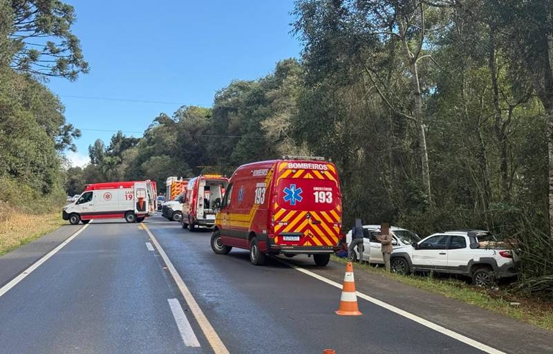 A colisão, que ocorreu por volta das 12h3o, resultou em múltiplas vítimas, sendo três delas com ferimentos que necessitaram de atendimento hospitalar, de acordo com informações do Corpo de Bombeiros. As guarnições de Irineópolis e Canoinhas atenderam a ocorrência.