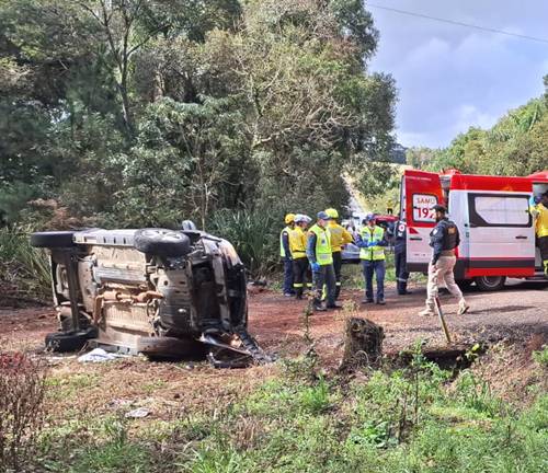 A passageira de 52 anos estava consciente, mas apresentava dores cervicais e torácicas. Após a estabilização do veículo, ela foi retirada com segurança, imobilizada em maca rígida e encaminhada ao Hospital São Braz de Porto União.