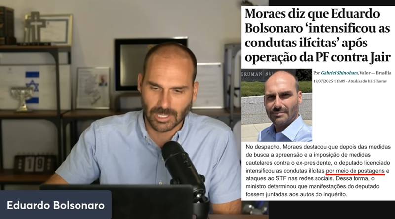 Ele também comentou a decisão na qual Moraes afirmou que o parlamentar “intensificou as condutas ilícitas” e determinou que entrevistas e postagens recentes nas redes sejam incluídas na investigação.