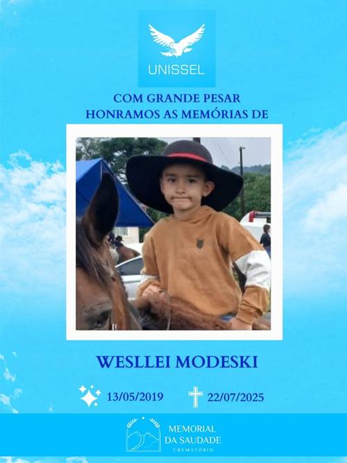 Foi identificado como Wesllei Modeski, de 6 anos, o menino que morreu atropelado acidentalmente por um trator na tarde desta terça-feira (22), na comunidade de Rio Novo, interior de Major Vieira, no Planalto Norte catarinense.