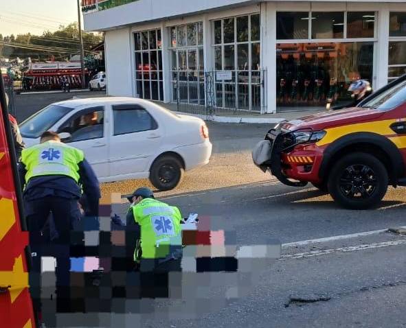 Uma motociclista de 55 anos ficou ferida após colidir na traseira de um automóvel na tarde desta segunda-feira (14), na Avenida Rubens Ribeiro da Silva, nas proximidades do portal de entrada de Canoinhas.