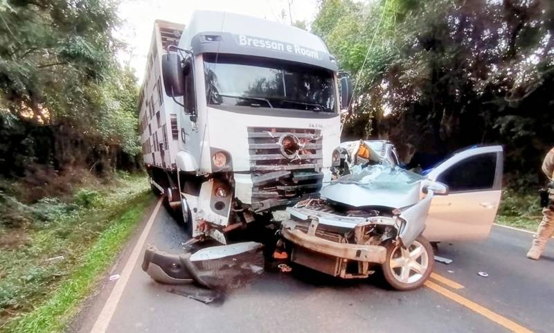 De acordo com a Polícia Militar Rodoviária (PMRv), a colisão envolveu um caminhão Volkswagen, com placas de Planalto Alegre (SC), e um veículo Sandero, com placas de Nonoai (RS). O impacto foi tão severo que o Sandero ficou completamente destruído.