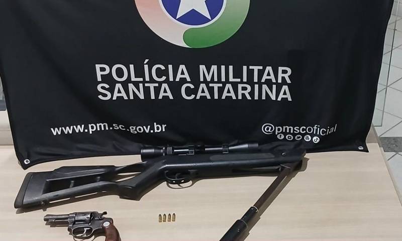 Diante da suspeita, o veículo foi abordado. Dentro da caminhonete, os policiais encontraram uma espingarda no banco traseiro e um revólver no console central. Imediatamente, os três ocupantes — dois homens e uma mulher — receberam voz de prisão.