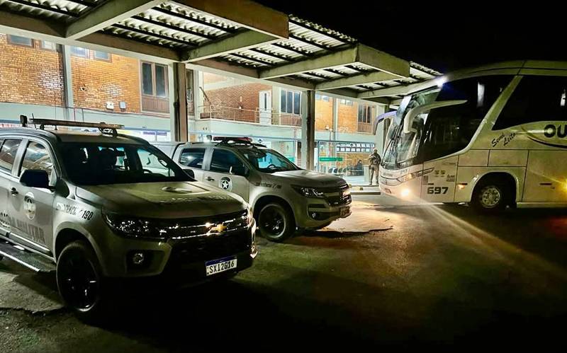 A ação teve como objetivo reforçar a segurança e fiscalizar ônibus que chegavam de Florianópolis e Curitiba, duas das principais capitais da região Sul.