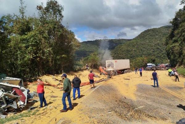 De acordo com Particheli, um dos caminhões descia a serra em alta velocidade, tombou e atingiu os outros veículos.