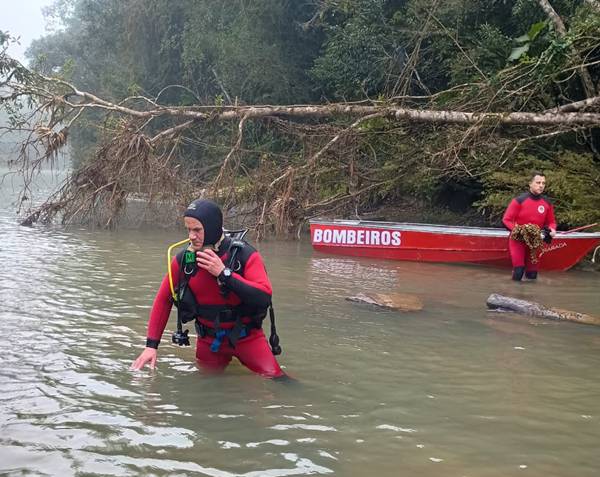 Por volta das 6h desta quinta-feira (21), a operação de busca e salvamento foi retomada com o apoio de mergulhadores de Papanduva e Mafra.