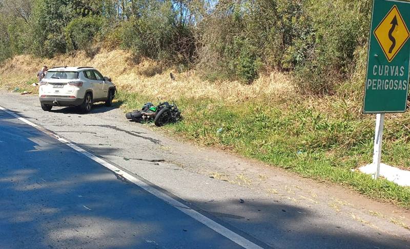 Um acidente de trânsito envolvendo um carro e uma motocicleta foi registrado na manhã deste domingo (17), por volta das 11h, na BR-280, na localidade de Rio Preto do Sul, próximo à ponte do Rio da Areia, em Mafra. A ocorrência foi atendida pelo Corpo de Bombeiros.