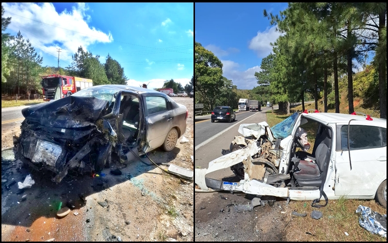 Um grave acidente envolvendo dois carros na BR-280, no bairro Sertãozinho em São Bento do Sul, resultou na morte de duas pessoas na tarde desta segunda-feira (18).